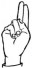 На ћирилици написано БЛАЖА СОКОЛОВИЋ састоји се из 14 слова [?]. Исписано ћириличном једноручном азбуком за глувонеме: